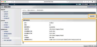 [鍵值和憑證設定] (鍵値組適用)或 [CA憑證設定](CA 憑證適用)。