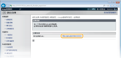 按一下 [用於註冊的URL:] 所顯示的 URL 連結。