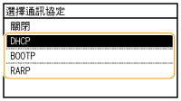 點選 <DHCP>、<BOOTP> 或 <RARP>。