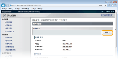 按一下 [IPv4設定] 中的 [編輯...]。