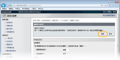 按一下 [IPv6設定] 中的 [編輯...]。