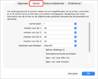 OPMERKINGSelecteer alleen de opties die daadwerkelijk in het apparaat zijn geïnstalleerd.