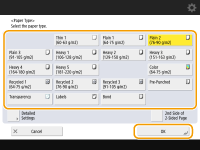 If the paper type loaded is not displayed, press <Detailed Settings> to select from a list.