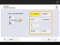 The envelope paper type cannot be selected from the details screen of <Paper Type>. To select the envelope paper type, register the paper type in <Register Favorite Paper (Multi-Purpose Tray)>, then press <Favorite Paper> in step 2  the button to which the envelope paper type has been registered  <OK>. Registering Frequently Used Paper Size and Type for the Multi-purpose Tray