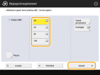 2 | Sélectionnez le type d'enveloppes. ![]() Pour enregistrer une enveloppe de taille personnalisée, appuyez sur <Personnalisé> <Suivant> et appuyez sur <X> ou <Y> pour spécifier le côté, puis utilisez le clavier numérique pour saisir la longueur du côté spécifié. |