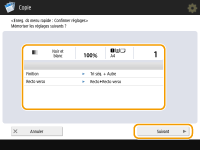 spécifiez les réglages pour la copie. Écran <Menu principal>