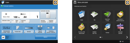 Premere  visualizzato in Menu principale e nella schermata Funzioni di base per personalizzare la schermata, ad esempio per ridisporre i pulsanti o creare tasti di scelta rapida. Solo l'amministratore può personalizzare il Menu principale. Personalizzazione del Pannello digitale
