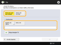 Specificare la destinazione sulla schermata delle funzioni principali fax. Schermata delle funzioni principali fax
