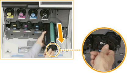 Dopo la sostituzione, mettere l'unità tamburo usata nel sacchetto che conteneva la nuova unità tamburo e conservarlo in attesa del ritiro da parte del rivenditore autorizzato Canon. |