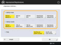 2 | Specificare l'indirizzo IP a cui applicare il criterio IPSec. Specificare l'indirizzo IP di questa macchina in <Indirizzo locale> e specificare l'indirizzo IP del peer di comunicazione in <Indirizzo remoto>. ![]()
