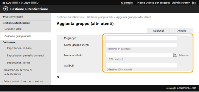Selezionare [Aggiunta gruppo (altri utenti)...] se è impostato Autenticazione utente.