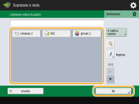 Il numero totale di destinazioni specificate viene visualizzato in alto a destra della schermata. Ciò consente di verificare che il numero di destinazioni sia corretto prima dell'invio.