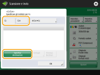 Specificare la destinazione nella schermata delle funzioni di base per la scansione. Schermata delle funzioni di base per la scansione