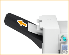 | Se la carta esce dal vassoio di uscita del finisher, estrarla delicatamente nella direzione della freccia. |