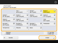 <Aceptar>. Registrar el tamaño y el tipo de papel de uso frecuente para la bandeja multiuso