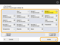 <Aceptar>. Registrar el tamaño y el tipo de papel de uso frecuente para la bandeja multiuso