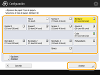 Seleccione el tipo de papel y pulse <Aceptar>.