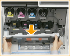 Sujete el depósito de tóner residual por los lados y estire hacia usted.