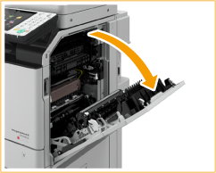 Cierre suavemente la tapa derecha de la unidad principal hasta que se oiga un clic.