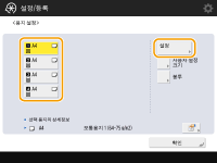 용지가 적재된 용지 공급원을 선택하고 <설정>을 누릅니다.