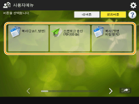 개인 인증 관리로 로그인하지 않은 경우 <내 버튼>을 누를 때 로그인 화면이 표시됩니다. 기기에 로그인하기 서버 기기의 원터치 버튼에 등록된 수신인이 업데이트되어도 클라이언트 기기의 퀵메뉴에서 원터치 버튼에 등록된 수신인은 업데이트되지 않습니다. 등록된 수신인에 전송할 수 없을 때에는 수신인이 업데이트 되었는지 확인합니다. |