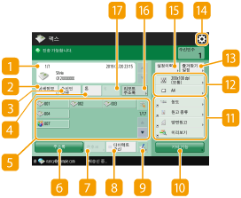 누르면 다른 Canon 다기능 프린터의 원터치 버튼에 수신인을 지정합니다. 이 버튼은 리모트 주소록을 활성화하여 사용하는 경우에만 이용할 수 있습니다.