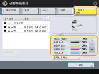 (상황확인/중지)을 누르면 토너 잔량 또는 기타 상태 표시를 확인할 수 있는 상태 모니터 화면이 표시됩니다.