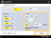 <설정>을 누르고 사용자 정보를 강제 인쇄할 기능을 선택합니다.