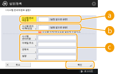 시스템 관리자 설정에 필요한 변경사항을 입력한 후<확인>을(를) 누릅니다.