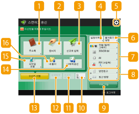<스캔하고 송신>(<메인 메뉴> 화면)을 누르면 스캔 기본 기능 화면이 표시됩니다.