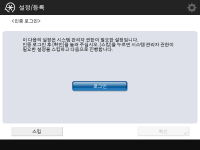 다음 경우에는 설정 가이드를 시작할 수 없습니다.사용자 인증 혹은 부서 ID 인증이 설정된 경우 부서 ID 인증이 설정된 경우 카드 인증이 실행되는 경우 |