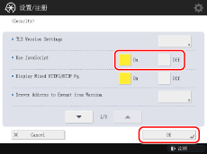 按[Security](安全性) → 为[Use JavaScript](使用JavaScript)选择[On](打开) → [OK](确定)。