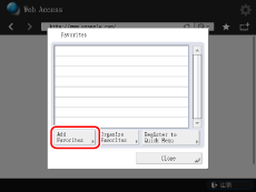 可以将经常查看的网页添加到“Favorites”(收藏)中。“Favorites”(收藏)中注册的网页在“主菜单”屏幕上显示为按钮。将网页添加到“Favorites”(收藏)后可以轻松地访问网页。