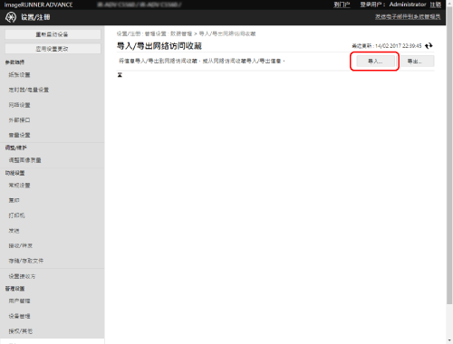 为[管理设置]单击[设置/注册]→[数据管理]。