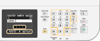 aparezca en la pantalla, podrá conectar un teclado al puerto USB para dispositivos USB de la Parte delantera e introducir el texto con el teclado. Cuando emplee un teclado, podrá seguir utilizando el teclado numérico.