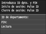 Cuando aparezca la pantalla de inicio de sesión, utilice el siguiente procedimiento para introducir el ID de departamento y el PIN.