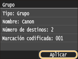 Repita los pasos 7 a 9 hasta que haya registrado todos los destinos que desee registrar y, a continuación, pulse <Aplicar>.