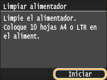 La limpieza automática del alimentador utiliza el papel cargado en el alimentador. Coloque 10 hojas de papel normal A4 o Carta US en el alimentador antes de iniciar la limpieza automática.