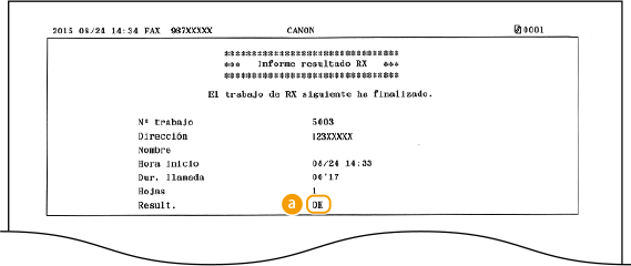 Puede consultar los registros de los documentos de fax o I-fax recibidos imprimiendo un Informe resultado RX. El informe puede imprimirse cada vez que finaliza una transmisión o solo cuando se produce un error de recepción.