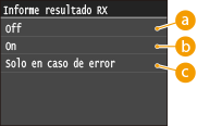 Seleccione esta opción para imprimir un Informe resultado RX solo cuando se produzca un error de recepción.