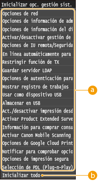 Si se inicializan las opciones de la IU remotaEl PIN de acceso a la IU remota también se inicializa.Tras una inicialización, vuelva a establecer el PIN de acceso a la IU remota. Configuración de un PIN para la IU Remota