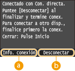 En la pantalla Inicio pulse <Conexión directa>.El equipo entra en el estado en que permite conectar el dispositivo móvil al equipo.