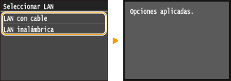 Pulse <Seleccionar LAN con cable/inalámbrica>.
