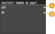 Seleccione si desea alternar entre la impresión en papel de tamaño A4 y Carta si uno de estos tamaños de papel está cargado pero el otro no. Por ejemplo, si imprime un documento de tamaño Carta pero solo hay papel A4 en el equipo, este imprimirá el documento en papel A4.