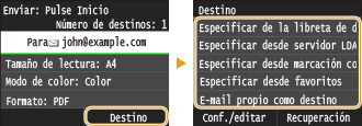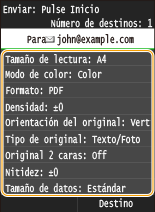 Para enviar e-mails directamente desde el equipo, deberá completar los preparativos de antemano, incluida la especificación de las opciones del servidor de correo. Configuración de opciones de lectura (envío por e-mail, envío y recepción de I-Faxes)