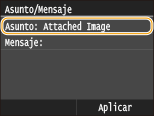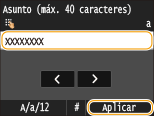 Introduzca el asunto utilizando las teclas numéricas y pulse <Aplicar>.