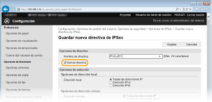En el cuadro de texto [Nombre de directiva], introduzca hasta 24 caracteres alfanuméricos en el nombre que se utilizará para identificar la directiva.