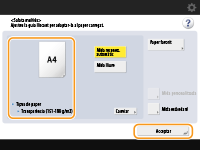 Quan canvieu la mida i el tipus de paperSi carregueu paper d'un altre tipus a l'equip, assegureu-vos de canviar les opcions. Si no canvieu les opcions, l'equip no podrà imprimir correctament. Especificació de la mida i el tipus de paper del dipòsit/calaix de paper
