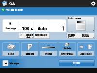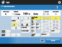 Mostra l'estat de l'opció, com l'escala de còpia, la mida de paper, el nombre de còpies, etc. Assegureu-vos de confirmar les opcions aquí perquè les còpies es facin correctament. Per modificar les opcions, premeu el botó que hi ha a sota de la secció de la pantalla.