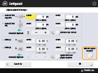 Quan torneu a obrir la pantalla <Ajustar posició d'imatge> després de tancar aquesta pantalla prement <Acceptar>, els valors de la pantalla tornen a <0>. No obstant això, se segueix aplicant el valor ajustat. Si repetiu passos, llegiu el valor de les marques de registre de la pàgina de prova nova i introduïu-lo.